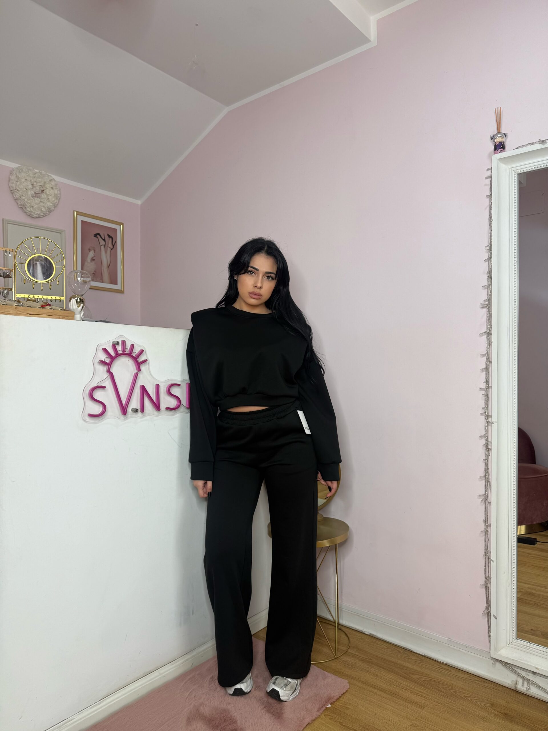 Coordinato tuta spalline imbottita pantalone morbido palazzo